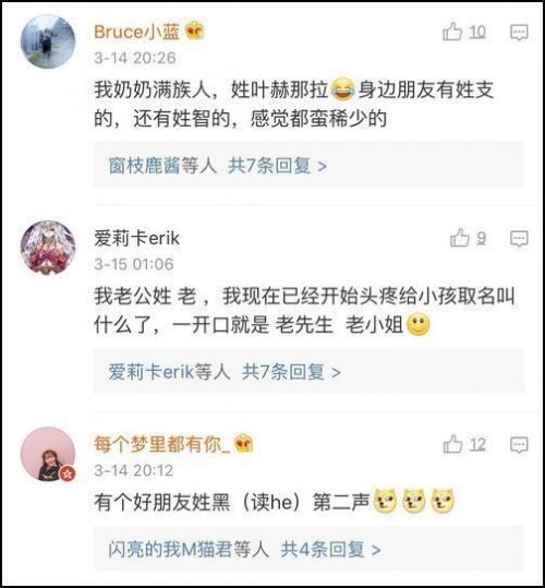 微博博主@小野妹子学吐槽 前日在微博发问:你身边最稀奇的姓氏、名字是什么?