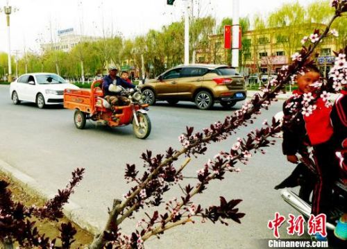 中新网新疆阿拉尔4月5日电 (天然 新农)街道两旁榆梅和杏花争艳,鸿沟两岸胡杨和垂柳竞绿;苹果林涌起遮天的彩霞,梨园悬挂蔽地的雪幔;田野里,播种机的轰鸣和牛羊的欢叫声交织,人们辛勤忙碌,身影绰绰……