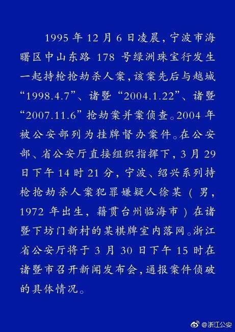 省公安厅发布微博:将于明日(30日)下午3时在诸暨举行新闻发布会。