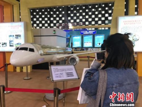 第五届中国(上海)国际技术进出口交易会于4月20日至22日在上海举行,上交会是经国务院批准的中国首个国家级、国际性、专业型技术贸易展会,本届主题是:创新驱动发展,保护知识产权,促进技术贸易。 图为C919大型客机的模型。 郑莹莹 摄
