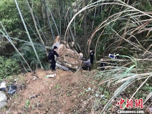 车辆翻落山崖,卡在一片竹林里 周正勇 摄