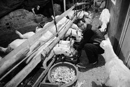 潘师傅卖完羊奶回到家,第一件事就是先把羊喂饱了,然后自己再吃饭。