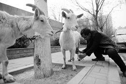 记者在东客站附近一个公园前见到潘师傅时,他正蹲在一只羊跟前挤羊奶,他身后还有两只羊拴在路边的树上。不时有路人凑上来跟羊拍照、喂草,特别是一些小孩,既好奇又欢喜。羊奶挤好了,潘师傅不紧不慢地把羊奶倒在准备好的袋子里,每次顾客买一斤,他总是多给二两。
