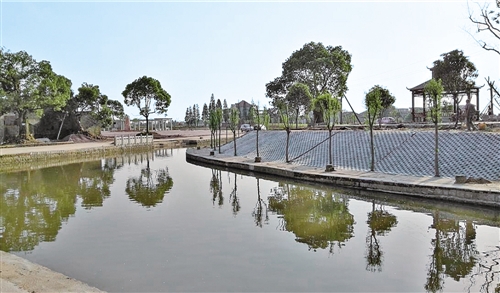 “这里原是一条水渠,我们把它挖深拓宽,建成了池塘。”施工队负责人饶贵虎说,“再干几天,把草皮和砖都铺好,这里就更美了。”