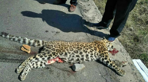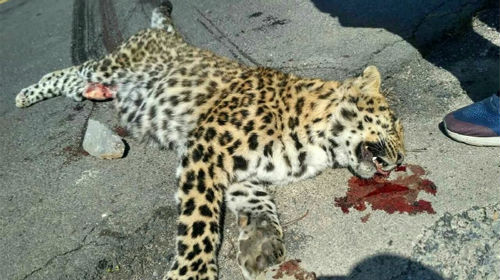 山西公路现死亡金钱豹 腹部划伤内脏取出冷藏处理(图)