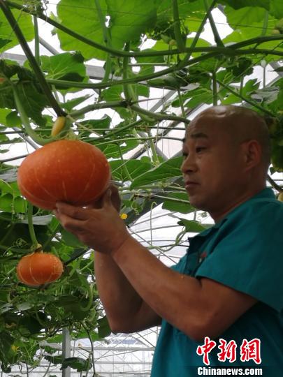 中新网江西瑞金5月20日电 (记者 苏路程姜涛)从2012年起,菜农杨永华在南瓜上刻字,挖掘了南瓜的经济价值。如今,经他刻字的“私人定制”南瓜不但越来越受欢迎,身价也从5元涨到50元甚至百元。“有字的南瓜不但具备食用价值、观赏价值,而且有特殊意义,所以经济价值高。”