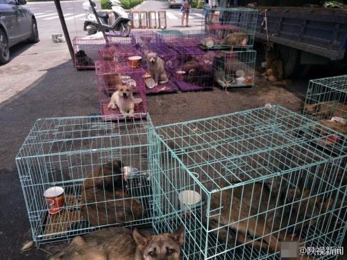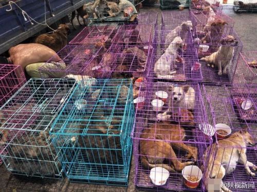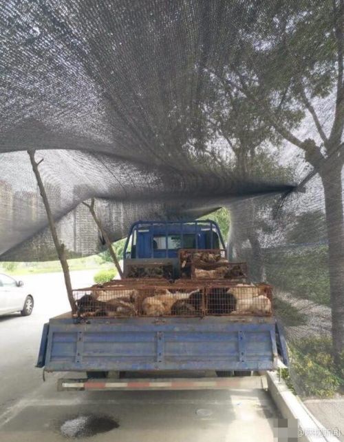 6月20号,西安北郊,记者在北辰东路看到停放着的拉狗货车,货车上的狗已经被志愿者从车厢卸到了地面。该车司机表示,他本来是打算从渭南出发去往湖北襄阳的,而没想到却被拦到了这里。图文:陕视新闻