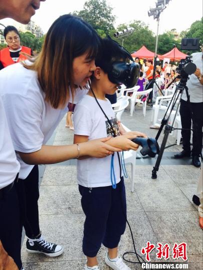 小学生在体验文明指数VR测评系统 潘宇婷 摄