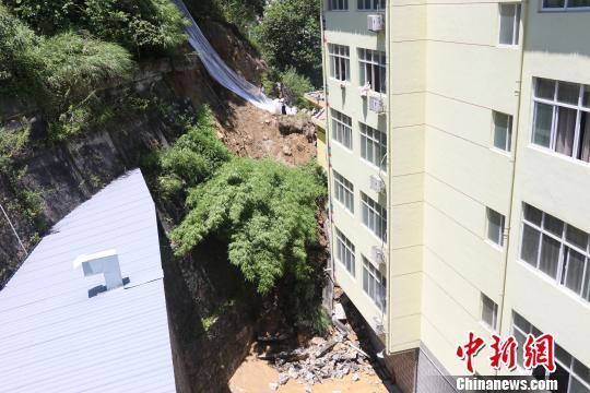 图为碧罗数字电影院背后发生山体滑坡。郭健摄