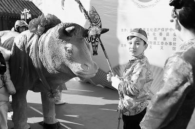 “一打风调雨顺,二打国泰民安,三打三阳开泰……”在民俗专家的引导下,牛童、春姑娘挥动柳条鞭打春牛,随后将牛肚子里装满春粮的福袋掏出来,分发给围观的市民,传递春天到来的消息。今天立春,从明清时期就开始进行的“打春牛”民俗再现京城。