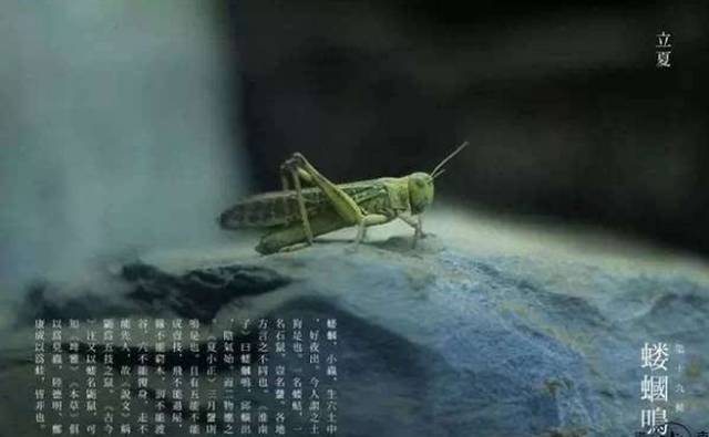 蝼蝈鸣:立夏之日“蝼蝈鸣”。按东汉郑玄的解释,“蝼蝈”为蛙类,非蝼蛄(lóu gū)。立夏鸣的据说是一种色褐黑的蛙。
