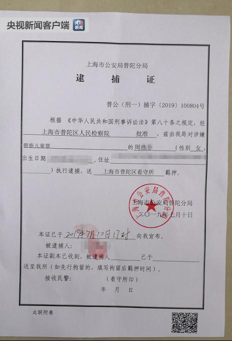 2019年7月10日下午,上海市普陀区人民检察院以涉嫌猥亵儿童罪,依法对犯罪嫌疑人王某某、周某某批准逮捕。当天下午5点,上海市公安局普陀分局送达执行。