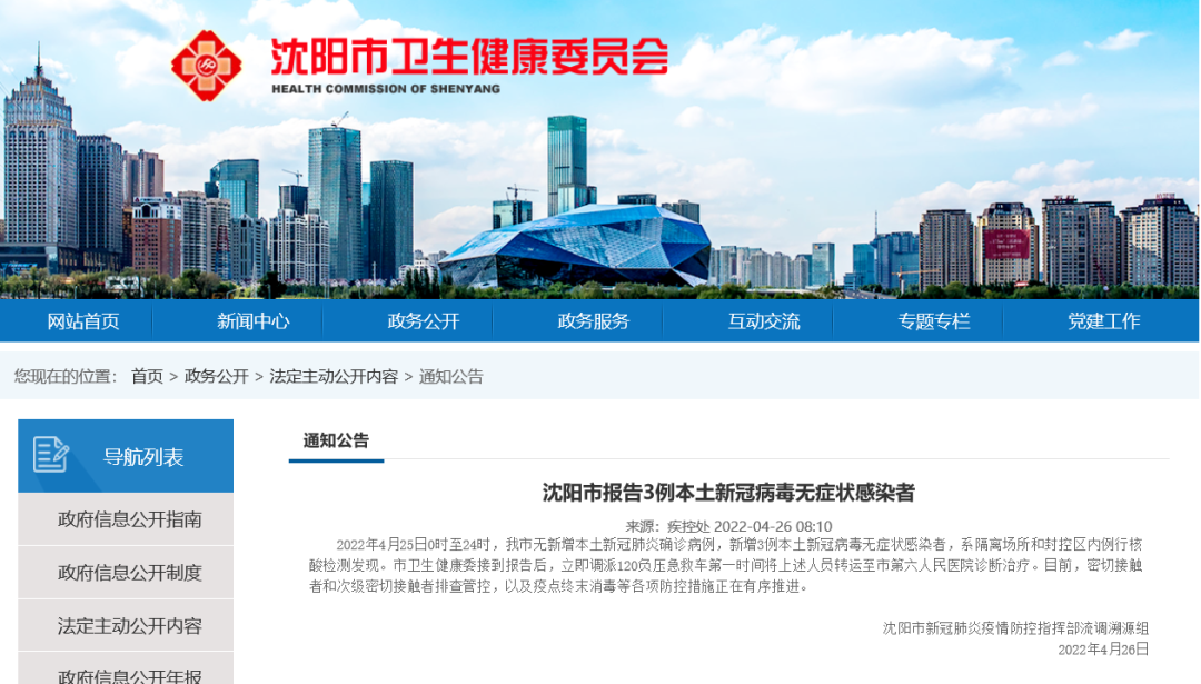 4月26日沈阳疫情最新消息:报告3例本土无症状感染者