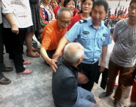 四川自贡老人因跳广场舞抢地盘打架(组图)