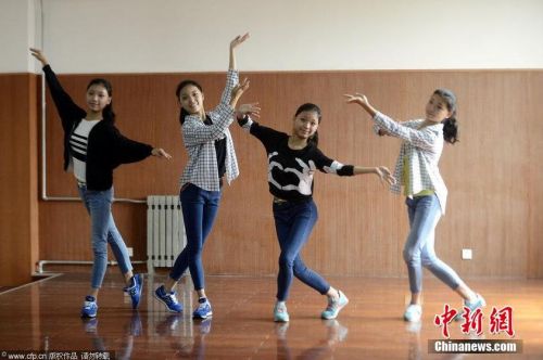 2014年09月12日,山东省济南市,山东省艺术学院大一新生报到。2014年艺考中备受关注的菏泽四胞胎“冰清玉洁”同时考入了山艺舞蹈学院。