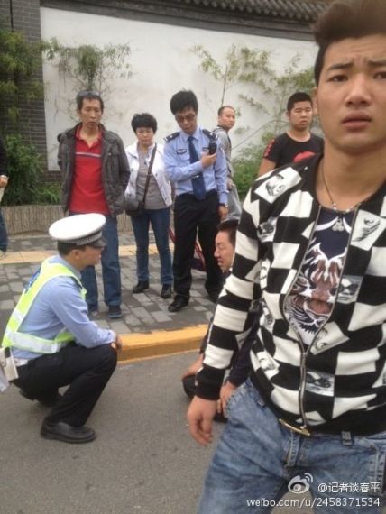 西安朱雀大街残疾人摩的司机向交警下跪现场图片