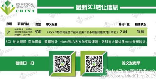 @MedChina医学服务中心微博贴出的最新SCI转让信息