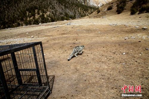 青海省玉树州一雪豹闯牛圈牧民合力将其放归野外