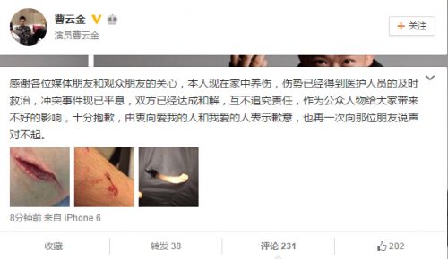 还原曹云金街头打架事件始末 晒受伤照遭网友吐槽