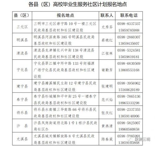 (1)现场报名。报名地点:三元、沙县等10县(区)民政局基层政权和社区建设股。
