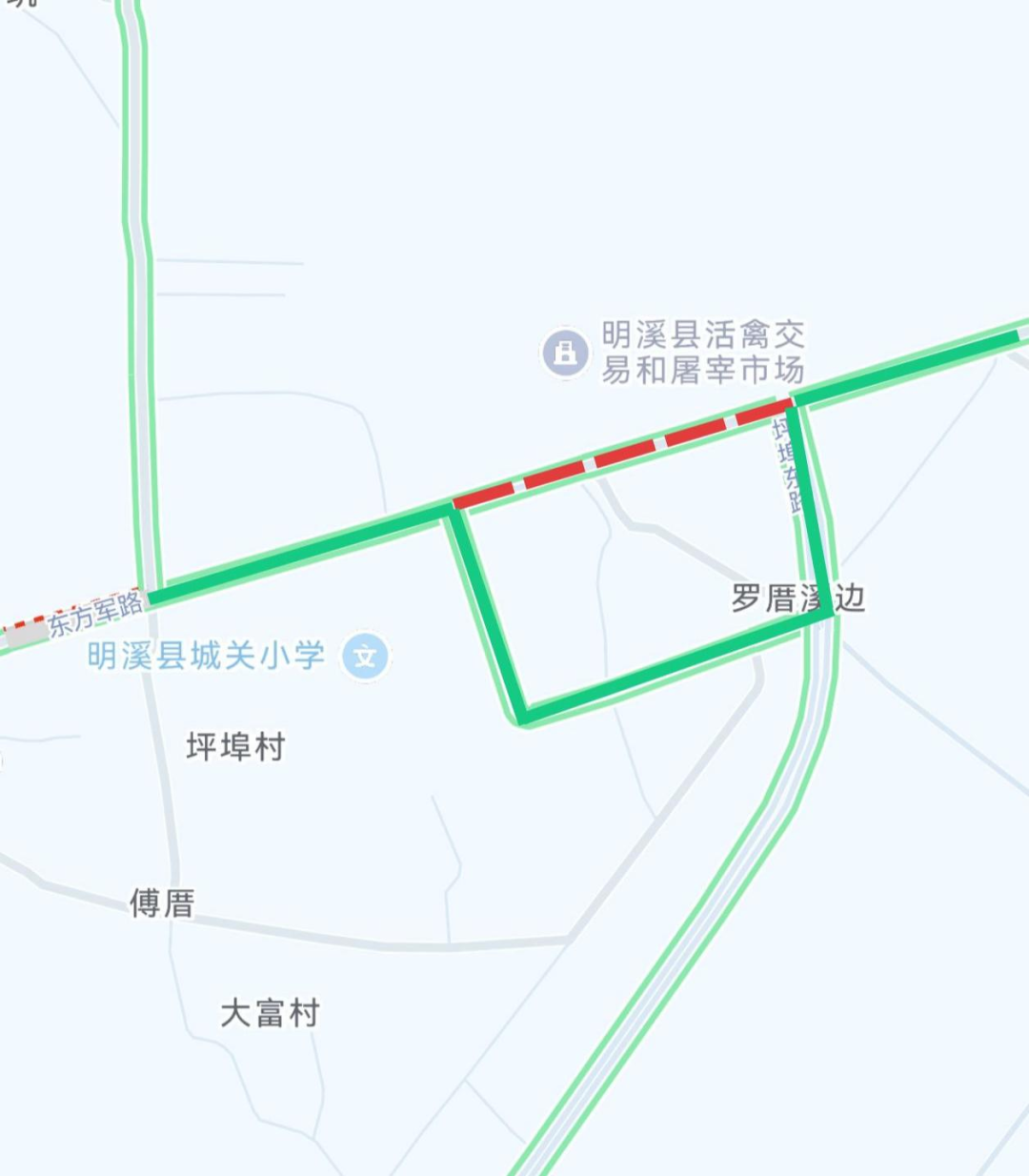 2、前往洋龙方向车辆,从坪埠东路路口处左拐至坪埠小学,再从坪埠小学拐至洋龙方向。