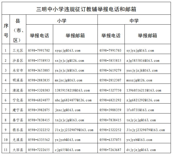 三明市教育局关于公布教辅校服监督举报渠道有关事项的公告