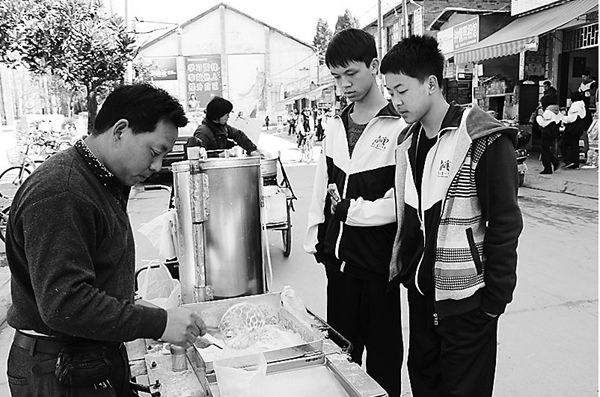 为什么18年来卖糍粑都不涨价呢?“这十几年来我从不涨价,虽然别人说这样做生意有点傻,但我觉得卖糍粑很自由,骑着三轮车能锻炼身体,还能养活一家人。”陶程辉跟笔者算了一笔账。他一天要做30斤的糯米,成本大概90元,制作佐料粉和制作时的电费等约30元,每天收入200多元,扣除成本后还能盈利100多元。“来买糍粑的大部分是中小学生,消费能力不高。现在各类小吃更多了,只能采取薄利多销的形式。”陶程辉说道。 (张茜茜 文/图)