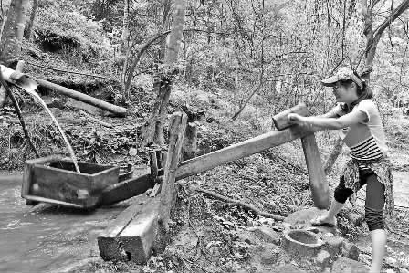 游客体验水力舂米