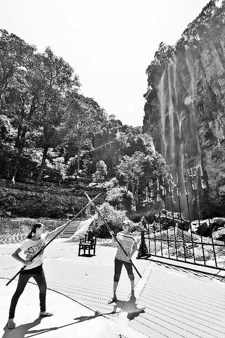 游客体验武术对打