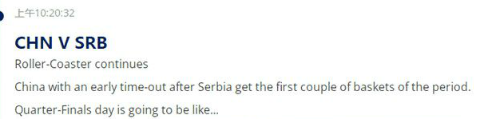 第三节时,FIBA官方写到:“过山车一样的比赛还在继续。”