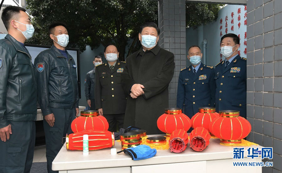 中华民族传统节日春节即将来临之际,中共中央总书记、国家主席、中央军委主席习近平2月4日视察空军航空兵某师,看望慰问部队官兵,代表党中央和中央军委,向全体人民解放军指战员、武警部队官兵、军队文职人员、民兵预备役人员致以诚挚问候和新春祝福。这是习近平到场站医院了解部队疫情防控和支援地方防疫情况。新华社记者 李刚 摄