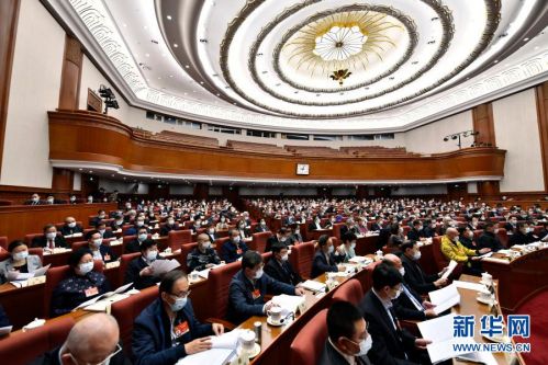 3月8日,全国政协十三届四次会议举行视频会议。会议在全国政协机关设主会场,在委员驻地设分会场。这是主会场。新华社记者 高洁 摄