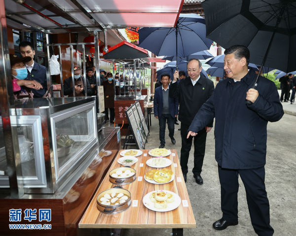 3月22日至25日,中共中央总书记、国家主席、中央军委主席习近平在福建考察。这是23日下午,习近平在三明沙县夏茂镇俞邦村考察时,在小吃摊边同乡亲们亲切交谈。 新华社记者 鞠鹏 摄
