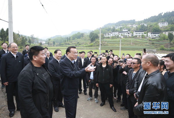 4月19日至20日,中共中央政治局常委、国务院总理李克强在四川广元、德阳、成都考察。这是4月19日,李克强在广元市青岭村考察。 新华社记者 丁海涛 摄