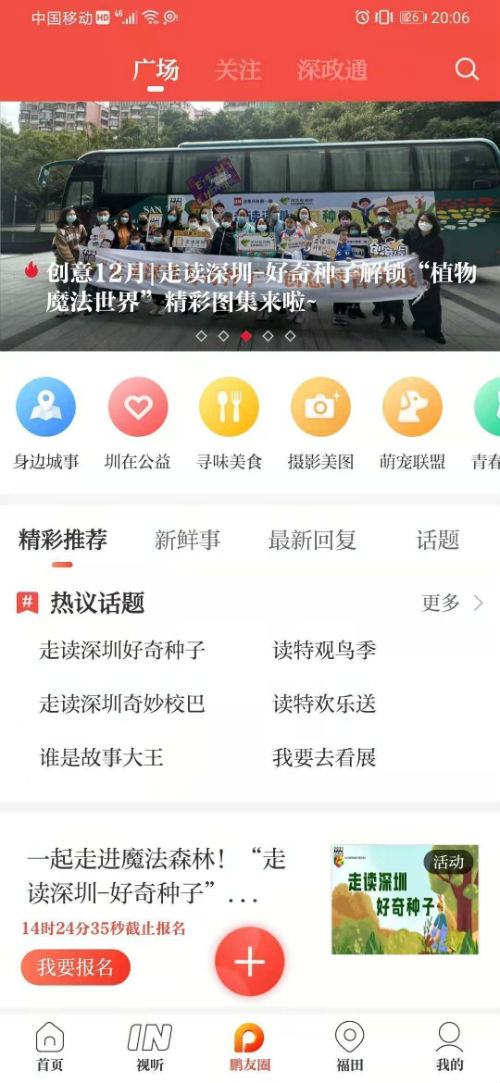 据统计,今年下半年,“鹏友圈”共开展40多次线上线下活动,推出一批热议话题,如读特观鸟季、读特欢乐送、鹏友圈去看展、走读深圳等,圈粉了一批忠实用户。“鹏友圈”的品牌项目也在业界收获不少肯定。今年9 月,读特策划和执行“网络大V看深圳·快手大V走进奋斗之城”主题采风活动,并利用“鹏友圈”平台开展相关宣传,得到用户广泛关注和积极参与,荣获2021年广东省“网络传播精品工程”效果评估优秀作品二等奖。