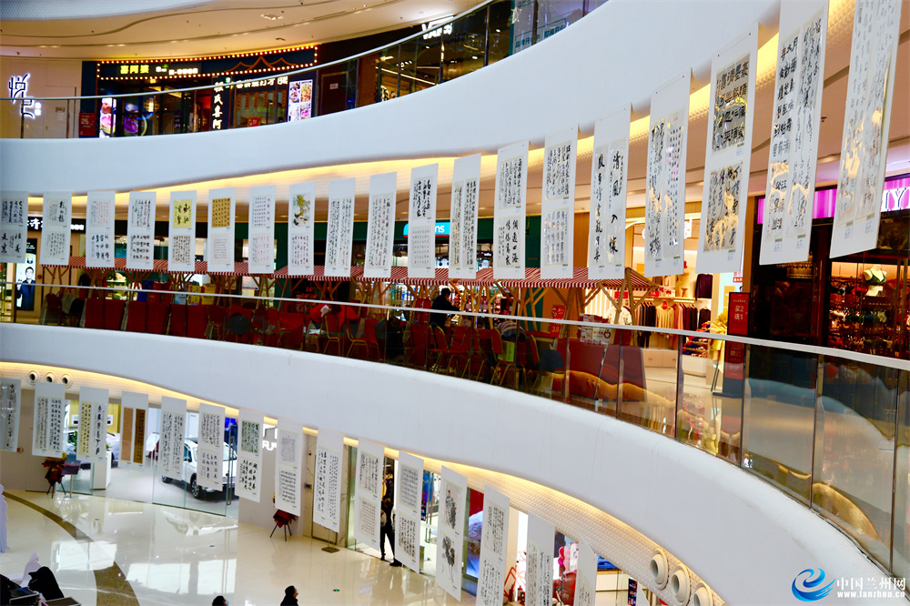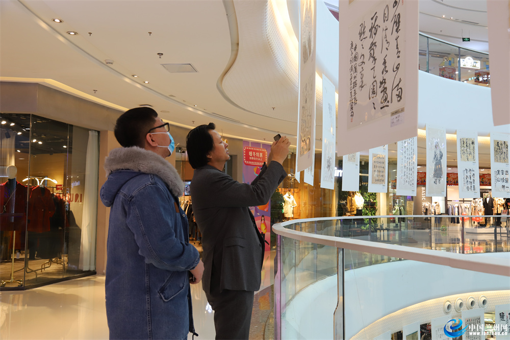 走进兰州万达广场,60余幅书画作品整齐摆放在大厅中央。大厅上空,悬挂着一幅幅书画精品很是醒目:气势恢宏的山水,栩栩如生的人物,赏心悦目的花鸟,浑然古朴的篆隶,挥洒自如的行书……浓浓的艺术氛围为现场平添几分意趣。一大早就有市民前来观看“‘书香兰州·全民共享’兰州互联网新闻中心成立10周年全国书画作品展邀请展”,边看边交流,还不时拿手机拍照。据了解,此次“'书香兰州·全民共享’兰州互联网新闻中心成立10周年全国书画作品邀请展”由兰州市委宣传部主办,为期1个月,共展出全国各地中书协、中美协会员书画作品500幅,旨在以纪念兰州互联网新闻中心成立十周年为契机,弘扬中华传统文化,为市民奉上书画艺术大餐。