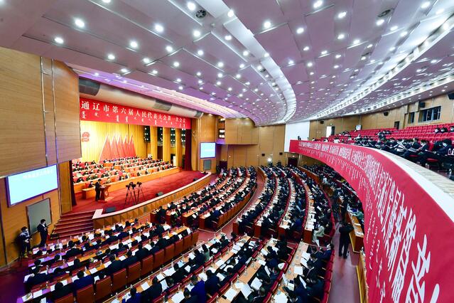 2月12日上午,通辽市第六届人民代表大会第一次会议在市行政中心礼堂隆重开幕。来自全市各地、各条战线的代表肩负各族人民的重托,昂首迈入会场。主席台上方国徽高悬,鲜艳的红旗分列两侧,会场内“以习近平新时代中国特色社会主义思想为指导,聚焦绿色转型,聚力高质量发展,加快跨越追赶步伐,在全面建设社会主义现代化国家新征程上书写通辽发展新篇章!”的巨幅标语,鼓舞人心、催人奋进。