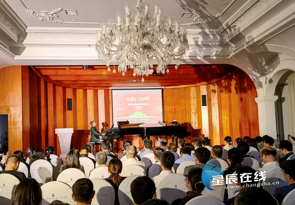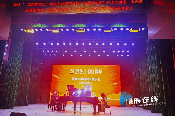 (以湖湘文化为根,创作了一批具有湖湘文化特色的钢琴作品。图文“庆祝共产党百年华诞”系列音乐会庆祝建党百年华——匡勇胜原创钢琴协奏曲《中国速度》 巡演音乐会邵阳站现场。均由通讯员供图)