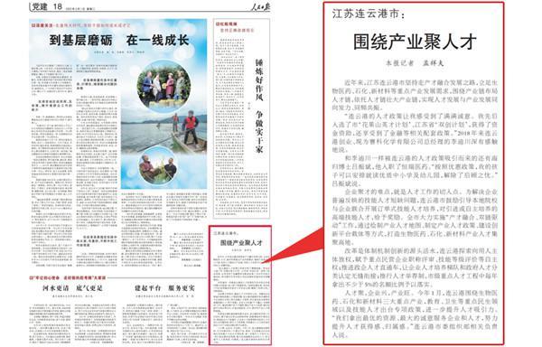 3月1日出版的《人民日报》,在党建版报道了连云港人才工作的相关经验。
