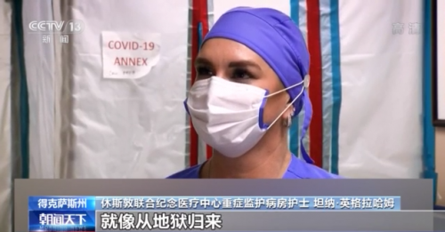 休斯敦联合纪念医疗中心重症监护病房护士 坦纳·英格拉哈姆:就像地狱一样,然后又回了一次地狱,就像我们不存在一样。你要知道,我们还在这里照顾病人,我自己、我的孩子和我妈妈,他们也有被感染的风险,我感觉我们被遗忘了,真的。