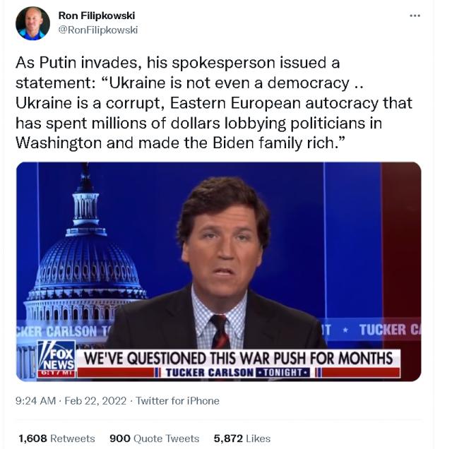 然而,在美国国内,许多美国网民却认为俄罗斯之所以敢对乌克兰动手,是因为美国国内存在一大群俄罗斯的“第五纵队”。