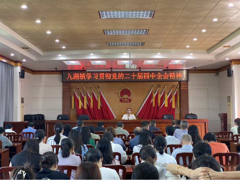 11月8日,九湖镇组织召开全体干部职工大会,专题学习党的二十届四中全会精神。镇长张川主持会议并作宣讲,带领大家深入学习习近平总书记在全会上的重要讲话精神和全会决策部署。