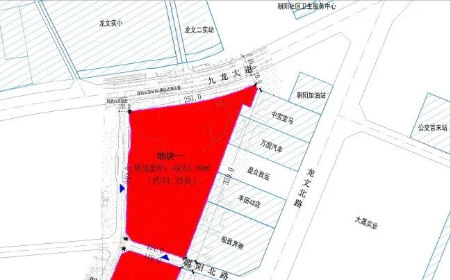 该地块位于蓝田经济开发区朝阳东路以东、九龙大道以南、中宝宝马4S店以西、朝阳北路以北,用地总面积约74.33亩。