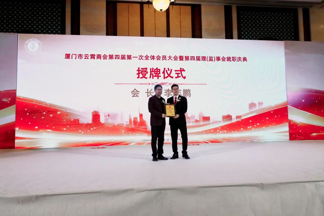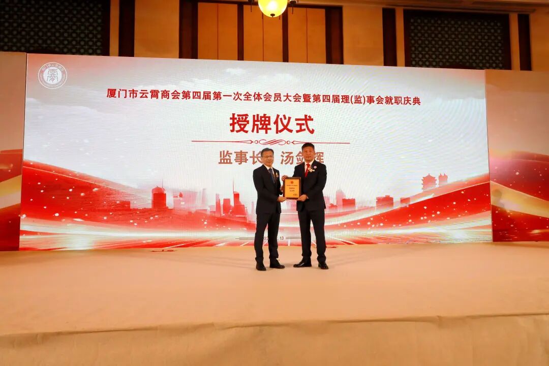 活动现场高朋满座、群贤毕至,与会领导嘉宾齐聚一堂,共同见证厦门市云霄商会第四届理监事会就职典礼,大会宣布李志鹏当选新一届会长,汤剑辉任监事长,并举行授牌仪式。新一届理监事会成员正式履新亮相,接过承载信任与期待的接力棒,充分展现在厦云霄乡亲凝聚乡情、共谋发展的崭新气象,必将为厦漳两地的经济文化交流架起更坚实的桥梁。