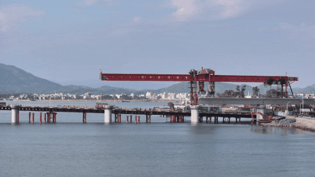 最新进展!漳汕高铁东山跨海特大桥海上箱梁开始架设