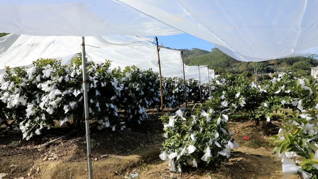 云霄冬季的水果主要有芭乐、青枣,果实都是在冬季生长的。所以我们指导农户用防寒剂,具体是芸苔素、葡萄糖以及磷酸二氢钾这三种混合起来喷施的,大概半个月用一次。它的作用就是,当遇到霜冻时,可以减少叶片的损耗。回温后果实会恢复得更快,生长得更快,保证因寒害减少产量。拉网的作用主要就是,使霜凝结在网的外面,果树叶片就不会受到冻害。