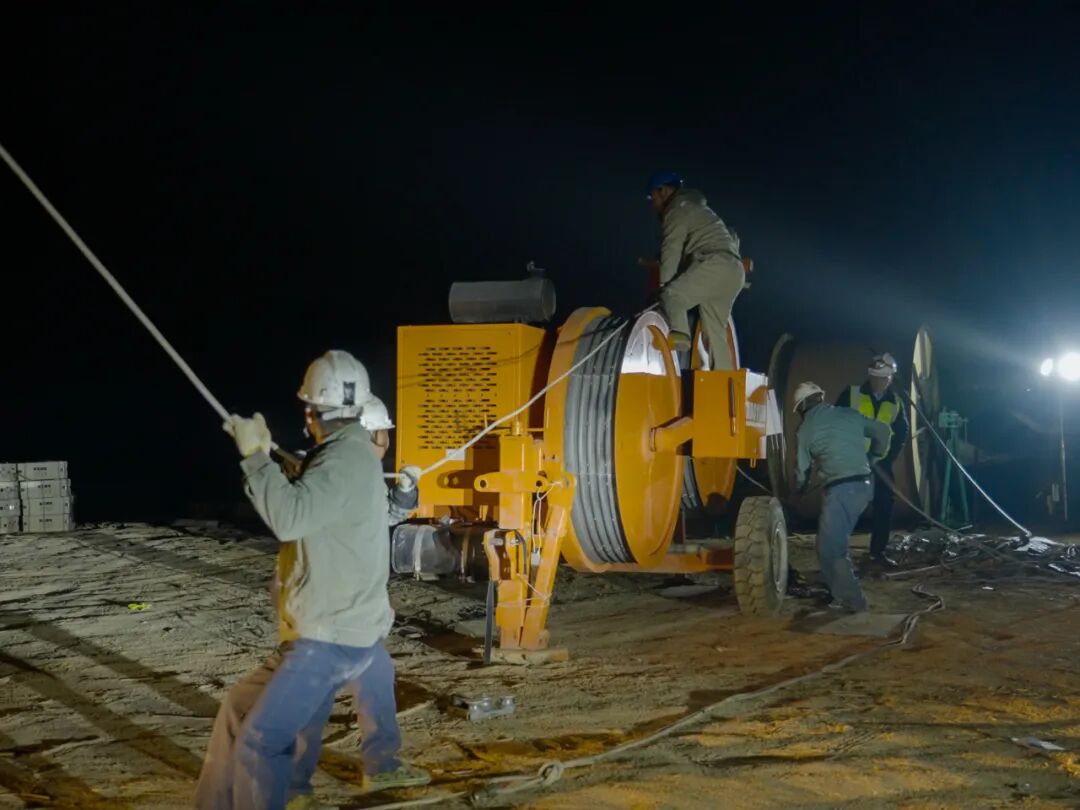攻坚不止步,服务不断线。面对其中尤为关键的220千伏漳天Ⅰ/Ⅱ路跨越杭深高铁封网作业,且适逢春运临近,为最大限度降低对铁路运行的影响,漳州供电公司迁改专班选择在今年1月9日深夜展开作业。施工现场灯火通明,供电人员全程驻守盯控,并创新启用无人机进行夜间照明,历时4.5小时终于完成此次高风险作业任务,为后续漳汕高铁建设顺利推进筑牢安全屏障。