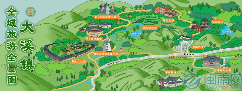 大溪镇地处平和、云霄、诏安三县交汇处,坐拥“闽南第一高峰”大芹山与国家级风景名胜区灵通山,自然景观壮丽奇崛。这里人文底蕴深厚,是众多台胞的重要祖籍地之一,血脉亲情源远流长;更拥有“世界最大方形土楼”庄上大楼等重点文物。独特的客家文化孕育了豆干、烟肠、米粉“美食三宝”,构成其魅力的底色。