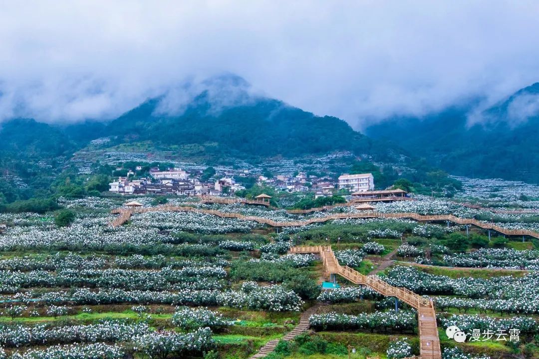 位于乌山脚下的棪树村枇杷生态观光园,被称为“云霄布达拉宫”。这里群山萦绕,“白雪”皑皑,蜿蜒曲折的木栈道镶嵌其中,好一幅恢弘壮阔、气势磅礴的隽美画卷。