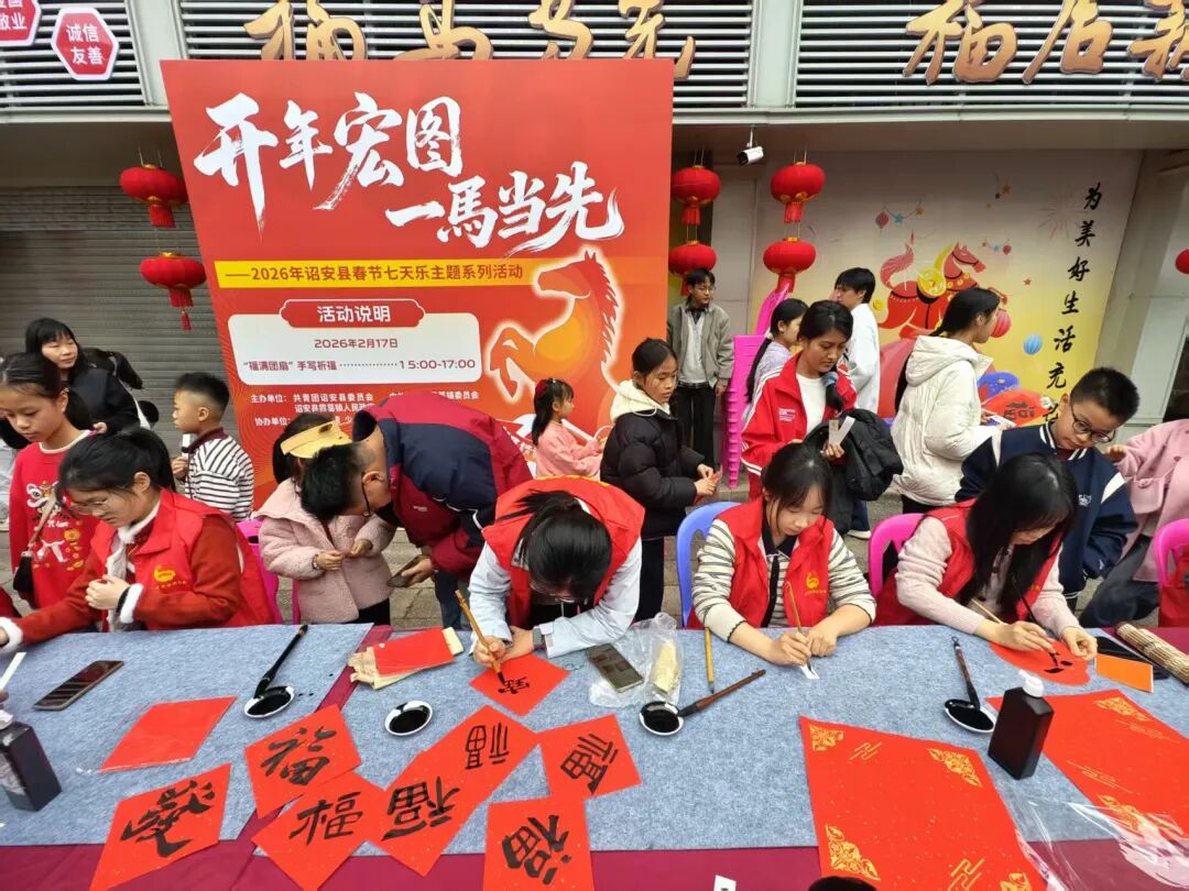 “福满团扇”手写祈福活动暖意融融。书法爱好者们现场挥毫泼墨,以扇为纸、以笔送福,一笔一画写下新春祝福,将寓意吉祥的 “福” 字与团扇免费赠予市民,一纸一墨间,传递浓浓年味与美好祝愿。